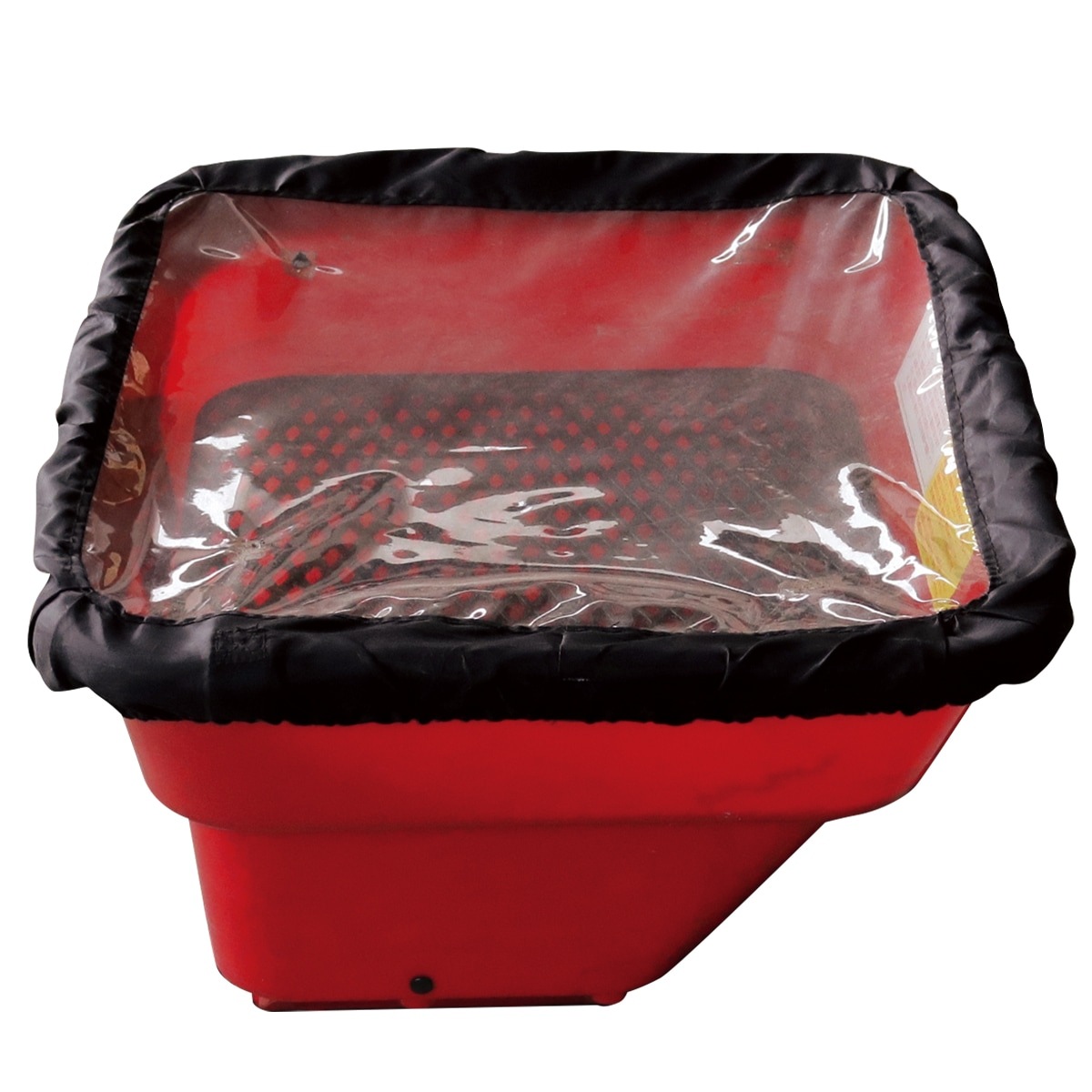 ●ホッパーに散布物(乾燥している物)を入れ、押し進む事によりインペラーが回転し、広範囲に散布されます。 ※カバー装着により、前後・左右の散布が可能! |