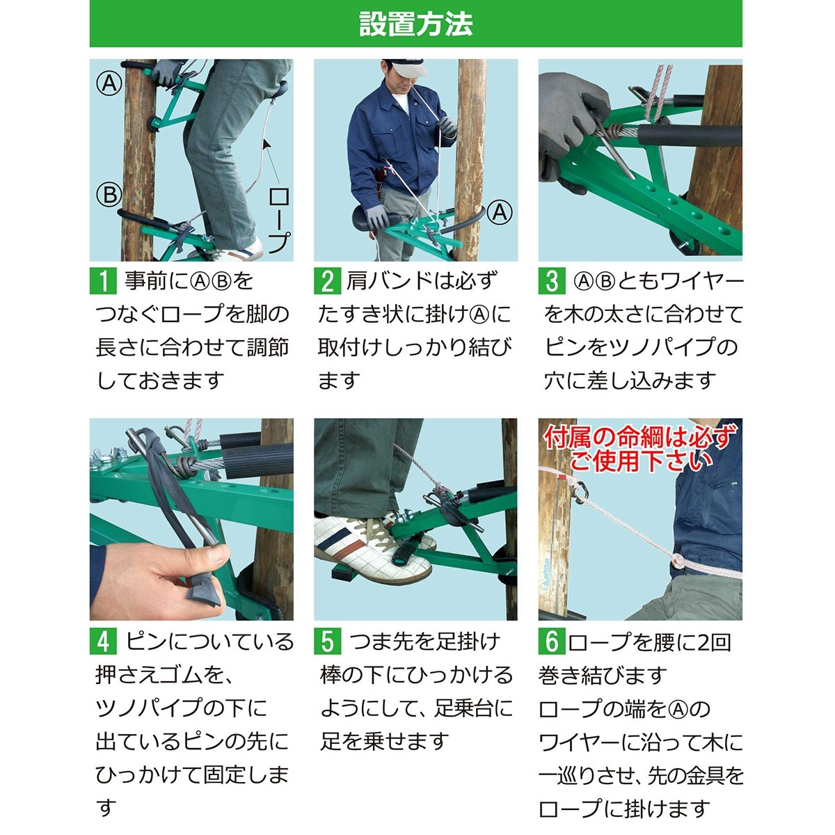 - 木登り器をご使用の際、墜落制止用器具を必ず装着してください。(※別売り)