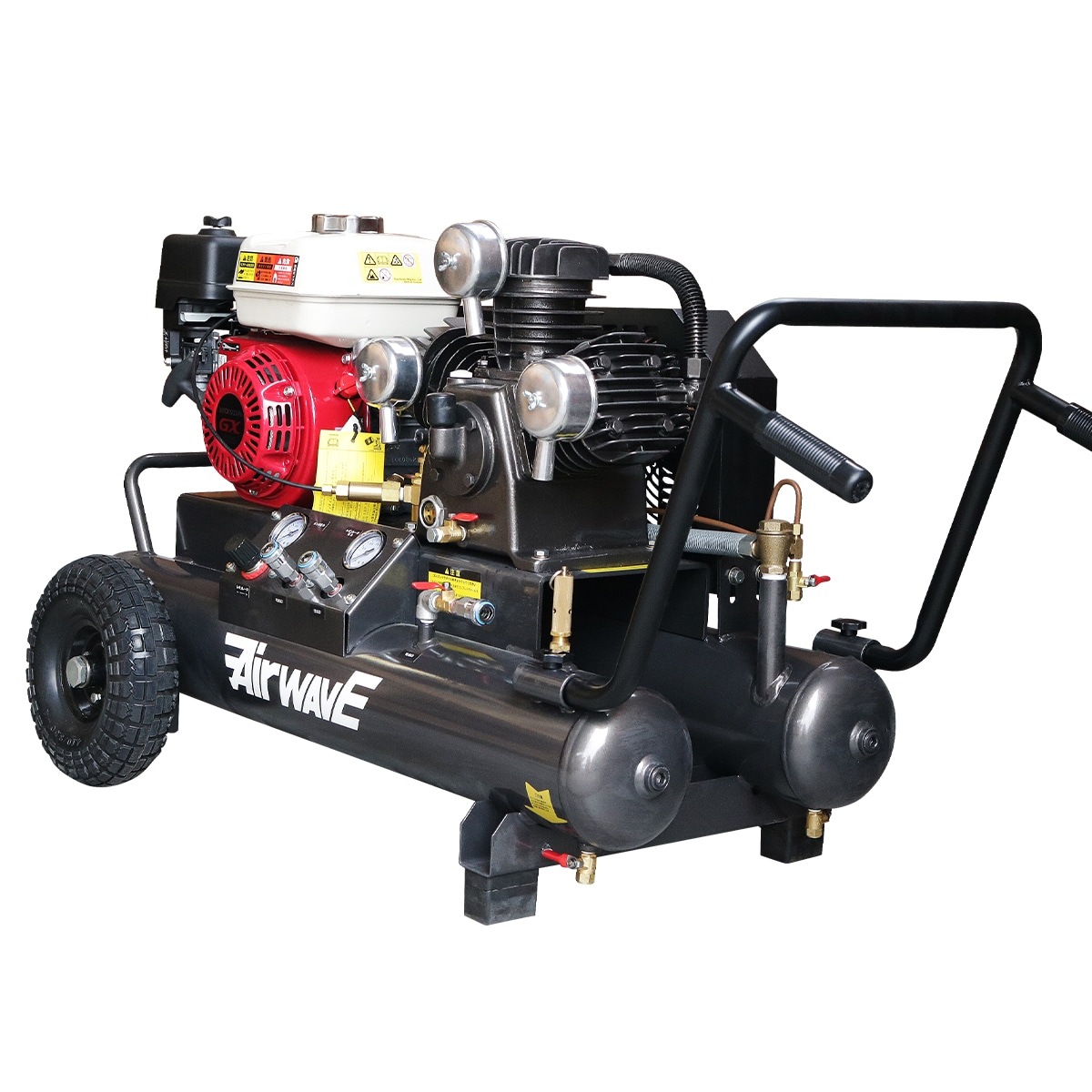 - 電源が確保できない屋外での作業現場でプロの要求に応えるハイスペックエアーコンプレッサー!