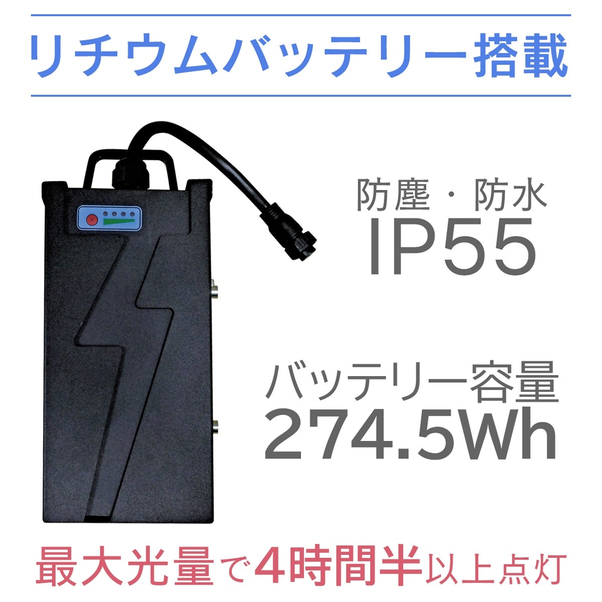 | 点灯時間 | 4時間30分~最大20時間(ご使用環境により多少変動します) |