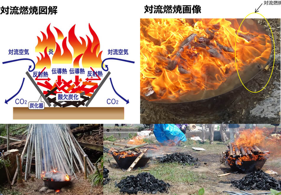 - 方法が簡易で誰でも手軽に短時間で大量の炭ができます