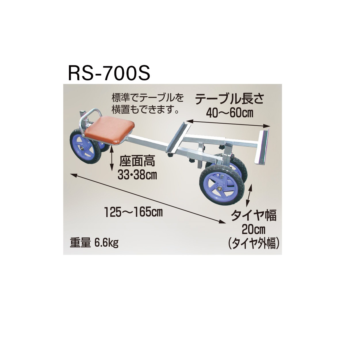 商品名 ラクエモン(アルミ製イチゴ収穫用幅狭台車)