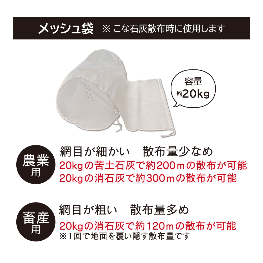 - 粉石灰散布時に使用する特殊メッシュ袋付属