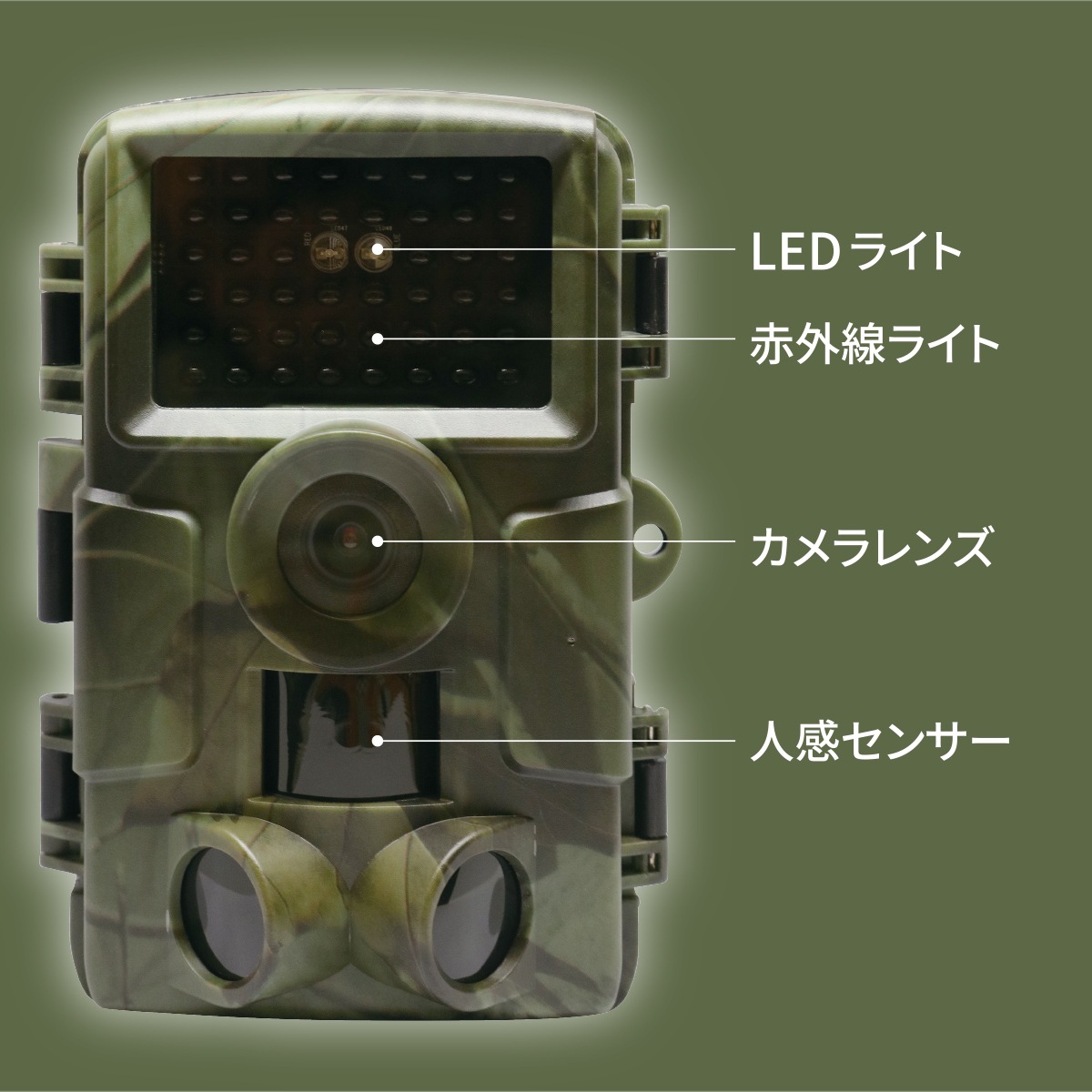 - 赤外線機能により、夜間でも鮮明な映像を記録。盗難や害獣の監視に役立ちます