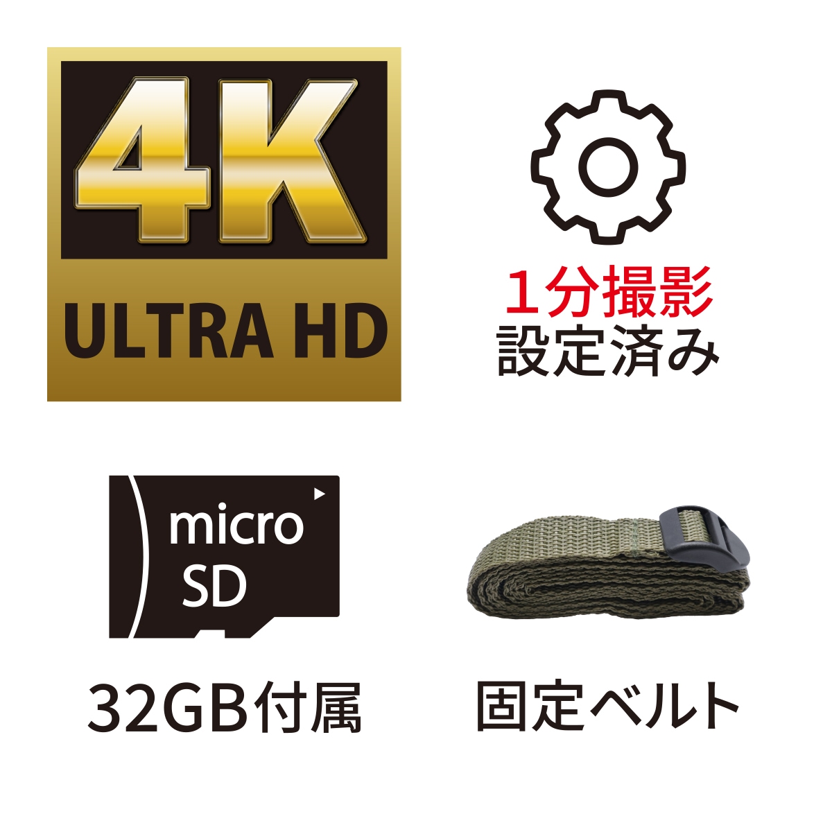 | 付属品 | 取扱説明書・USBケーブル(type-A/type-C)・給電ケーブル(DC/USB-A)・固定ベルト・microSDカード32GB |