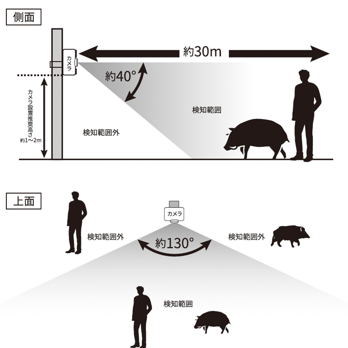 | センサー感知 | 角度:左右130度・上下40度 距離:30m |